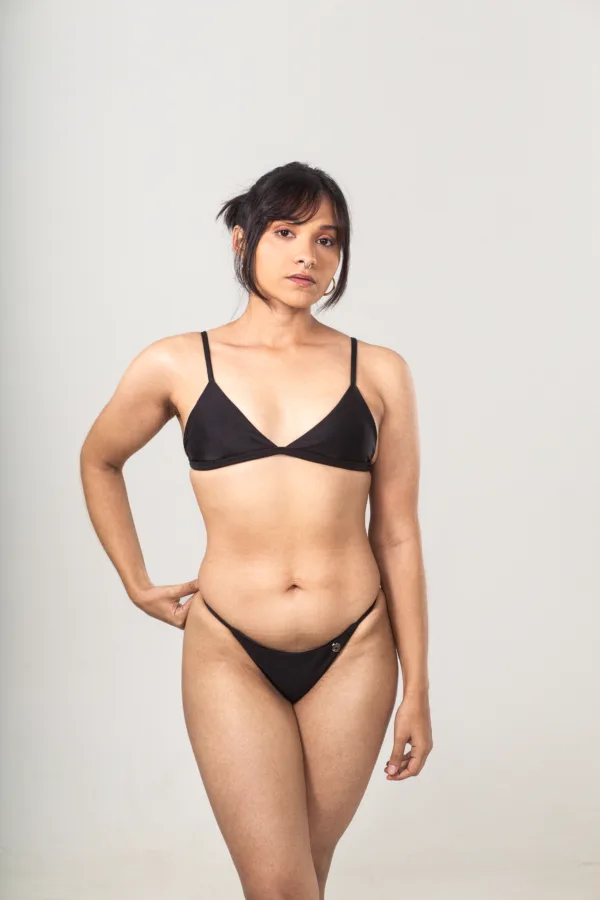 Biquíni Marquinha Clássico Preto essencial para qualquer guarda-roupa de praia, este biquíni sem amarração no estilo marquinha oferece conforto, praticidade e um visual clássico e elegante.