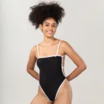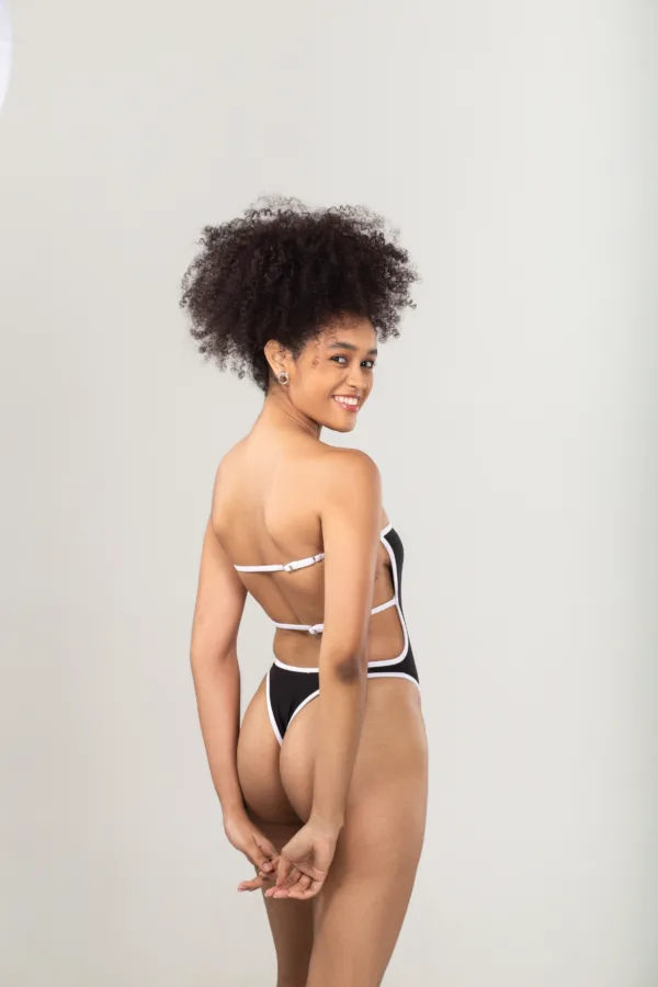 Body frente única Preto e Branco com design meia-taça, alça removível e regulagem nas costas, proporcionando sustentação, versatilidade e charme.