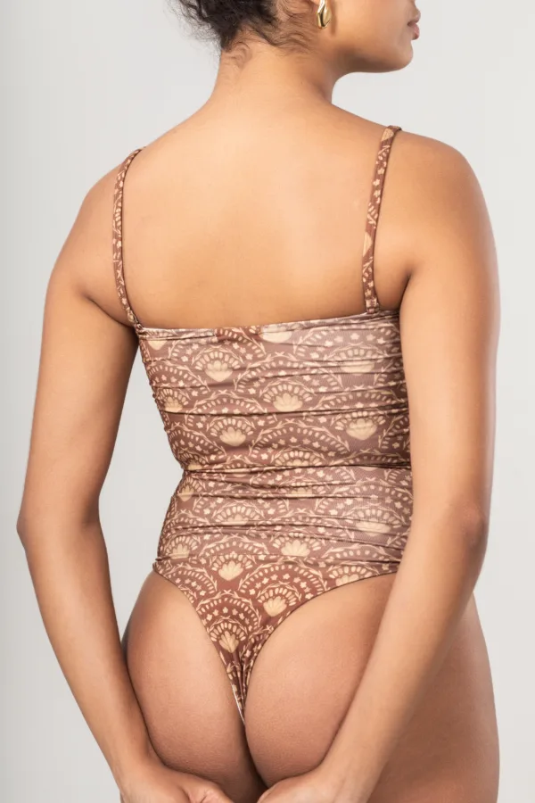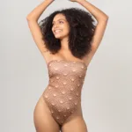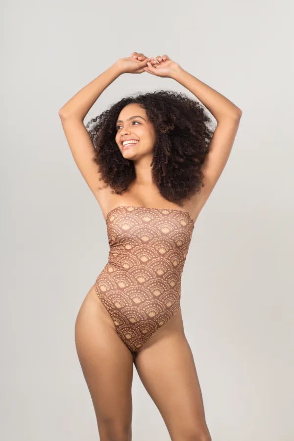 Body Tube Mocha sofisticação e conforto em um só body. Modelo meia taça com alça removível, feito em tecido extremamente macio e irisado, que garante brilho sutil e toque delicado à peça.